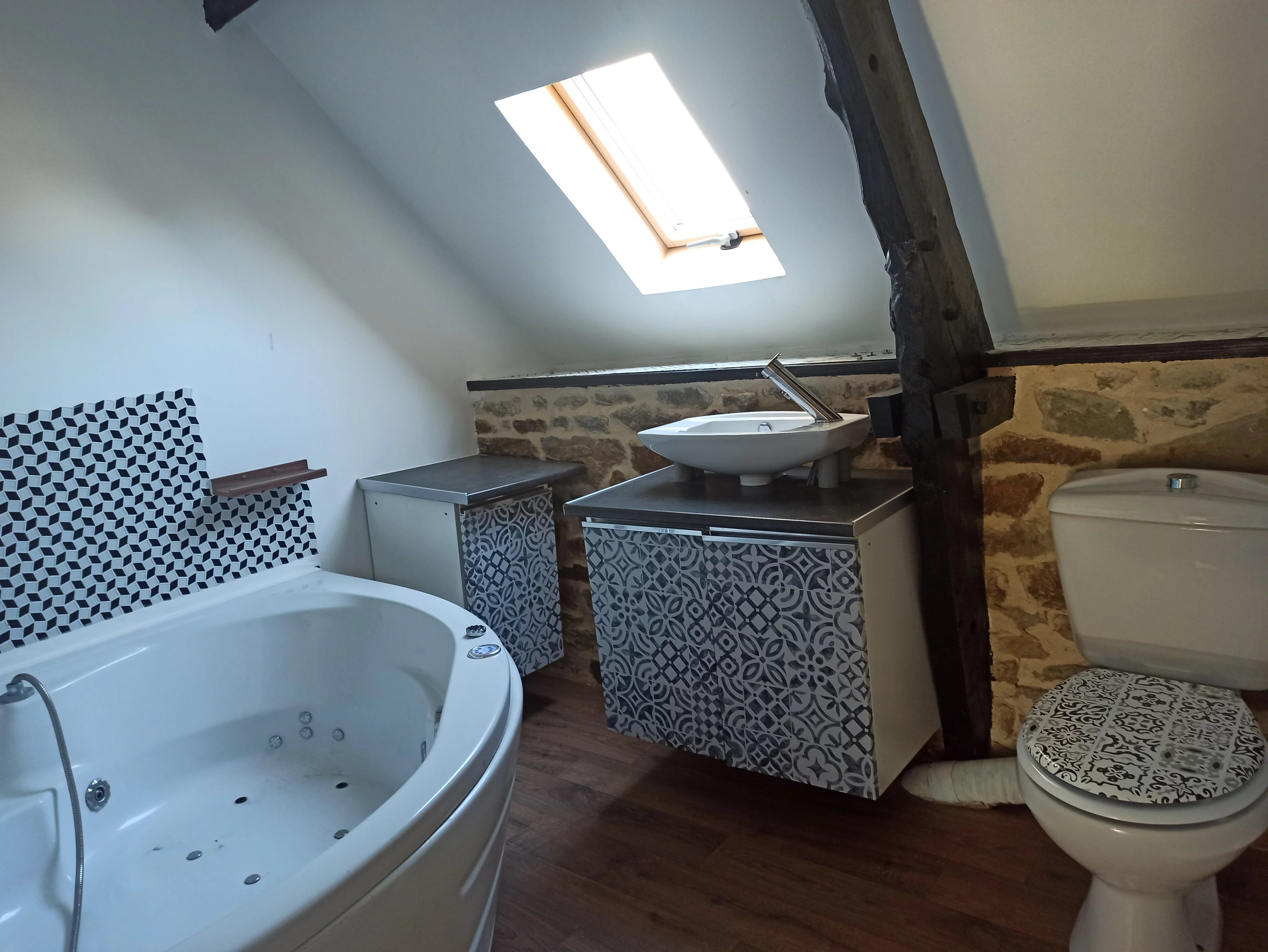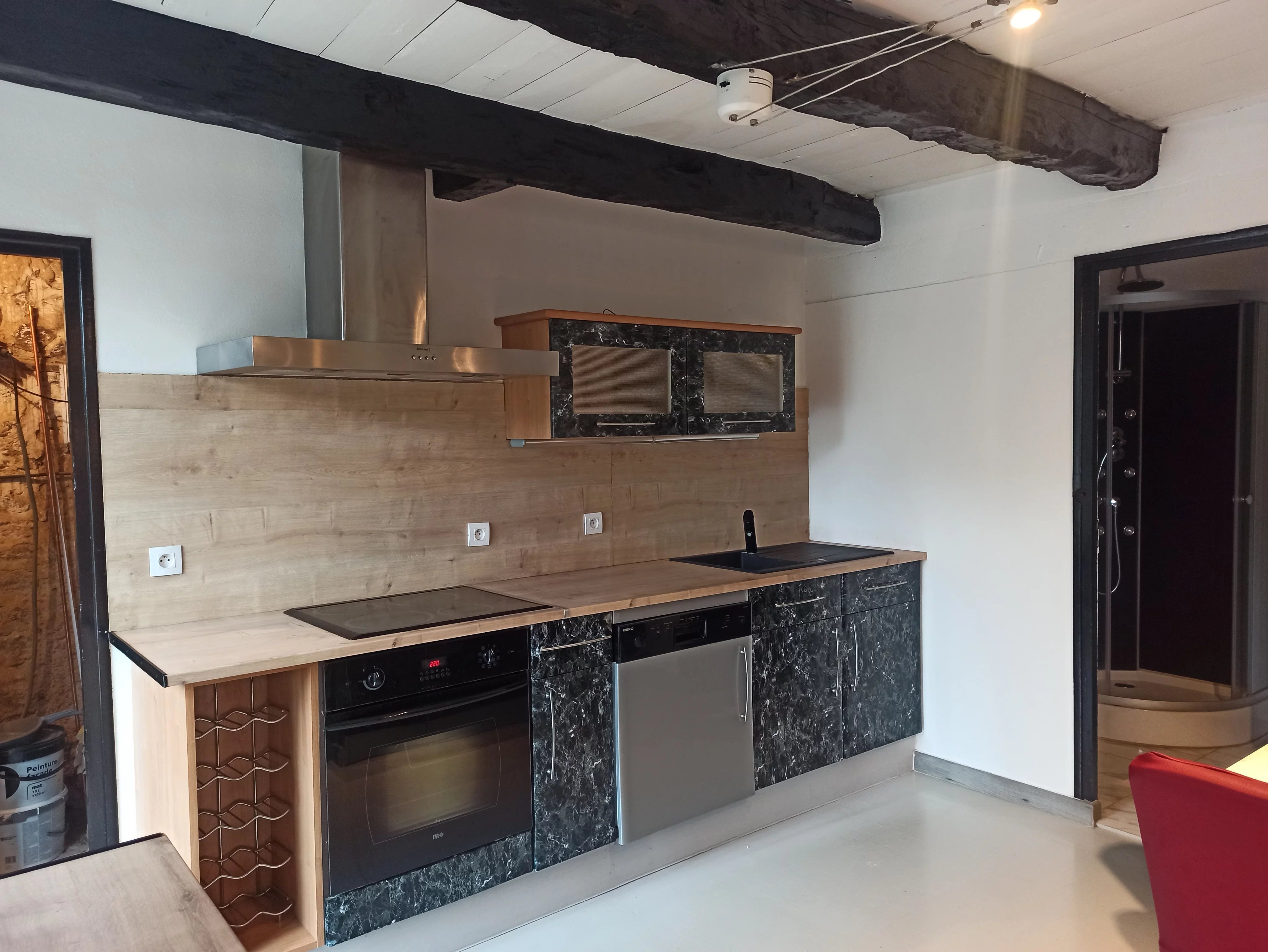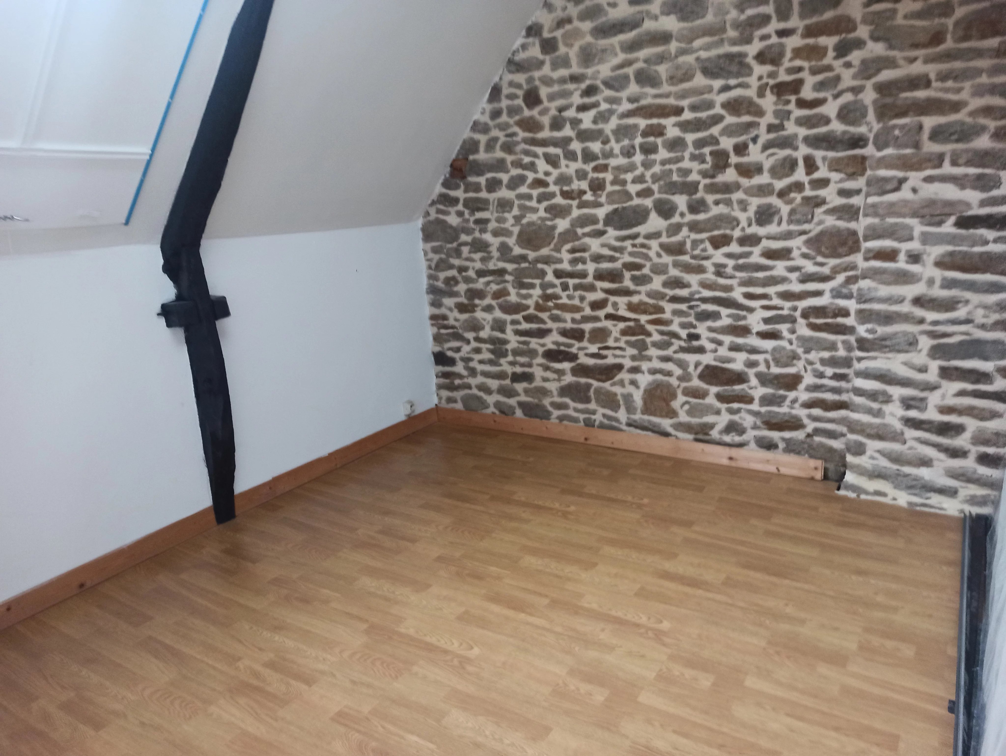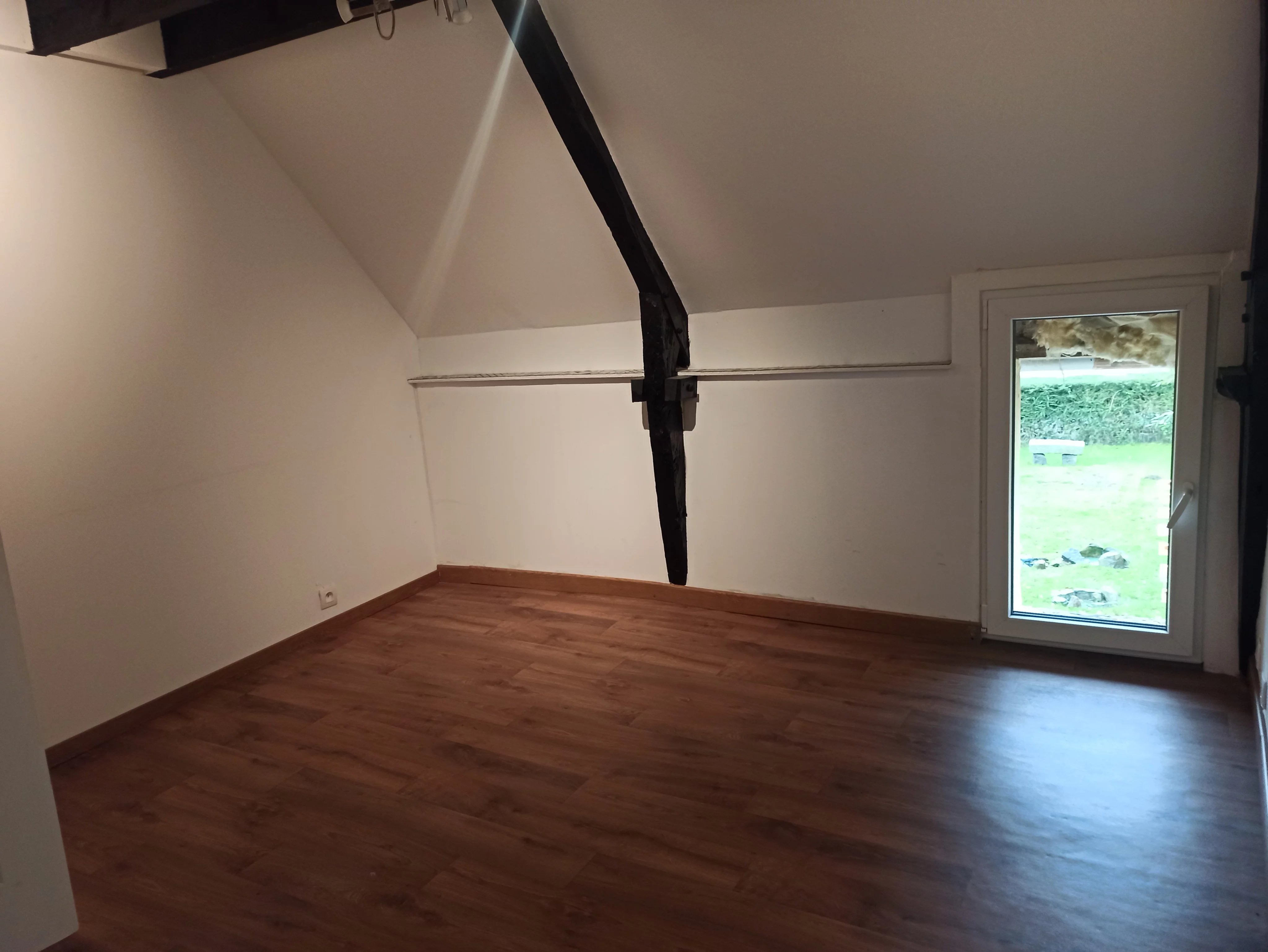 une belle pièce de vie avec possibilité d’installer un poêle à bois pour le confort et la convivialité de la pièce.